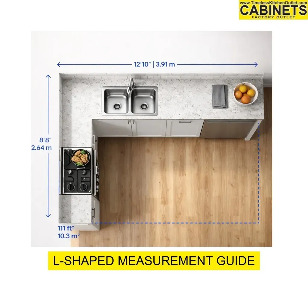 Check this image measuring guide to take with you while measuring your kitchen.
